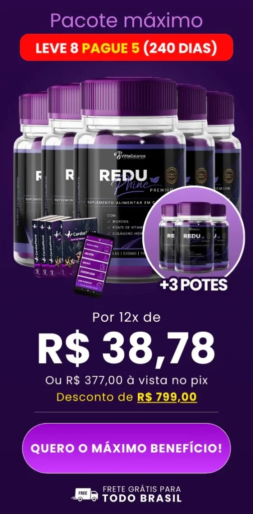 Não existe nenhum efeito colateral com o consumo do produto REDUPHINE PREMIUM, e qualquer pessoa pode tomar e aproveitar seus benefícios.